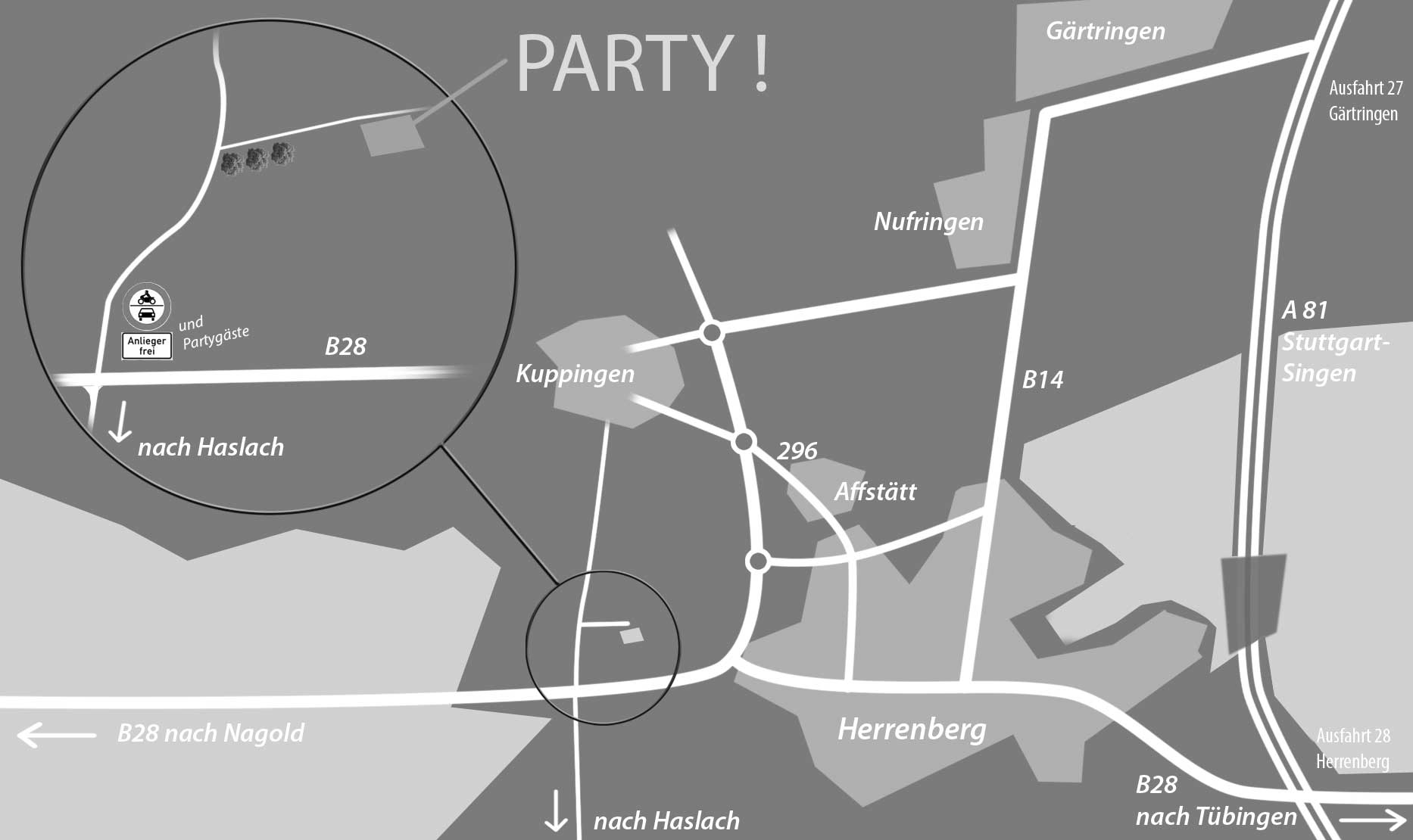 Von/zur S-Bahn Herrenberg sind es ca. 15 Min. zu Fuß, Ihr könnt also auch bequem mit den Öffentlichen anreisen.